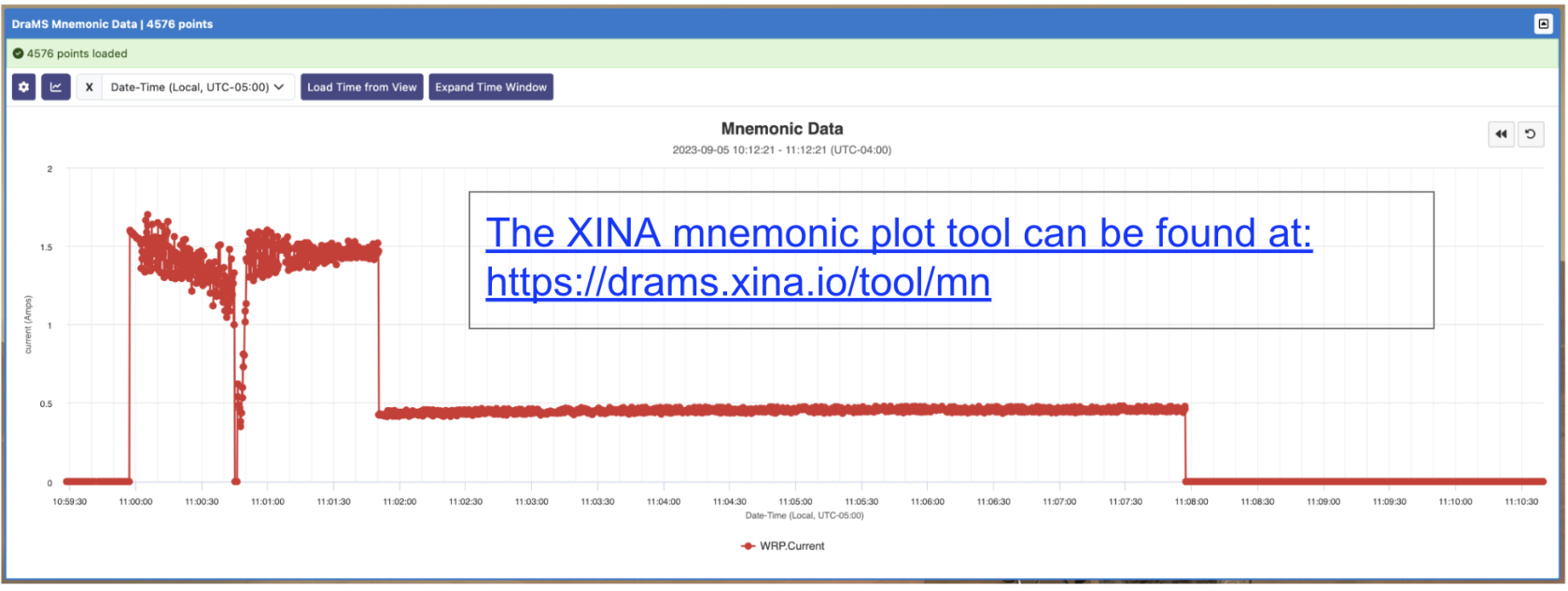 The Mnemonic Plot Tool is useful for looking at mnemonic data, like voltages and temperatures, over time.